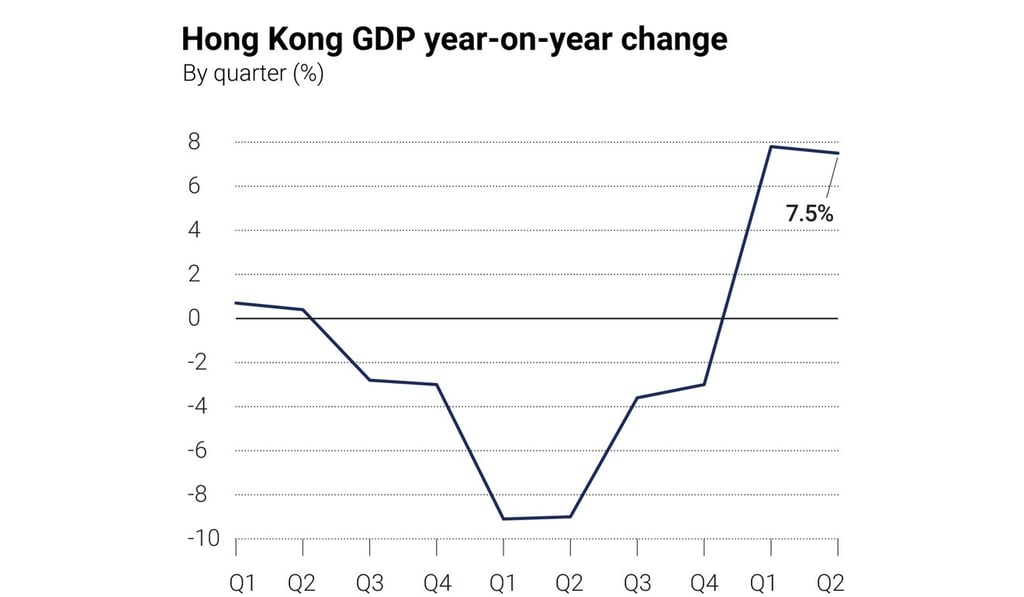 Hong Kong economy grows 7.5 per cent in second quarter, reflecting receding coronavirus crisis and improving global outlook