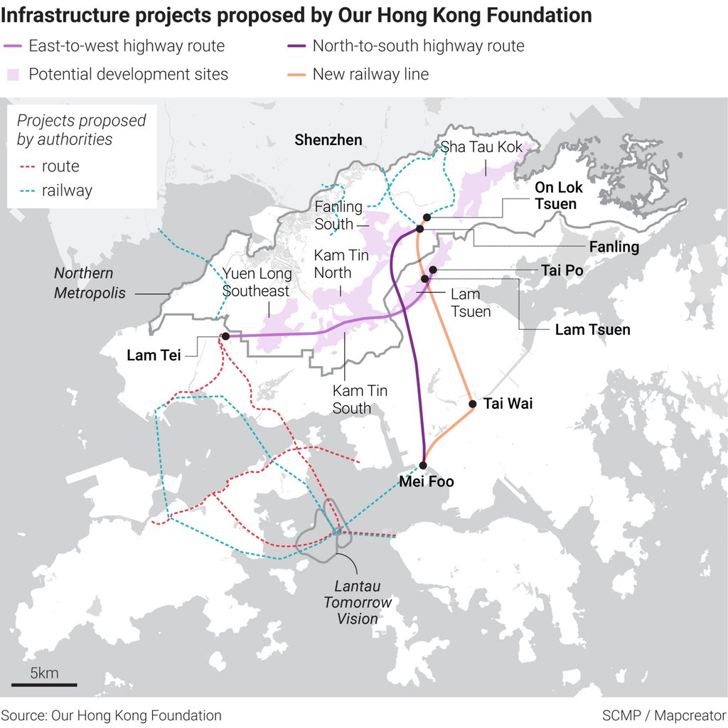 The proposal by Our Hong Kong Foundation came as the administration is expected to consult the public on building new transport networks to connect development areas in the New Territories with the urban core by the end of this year.