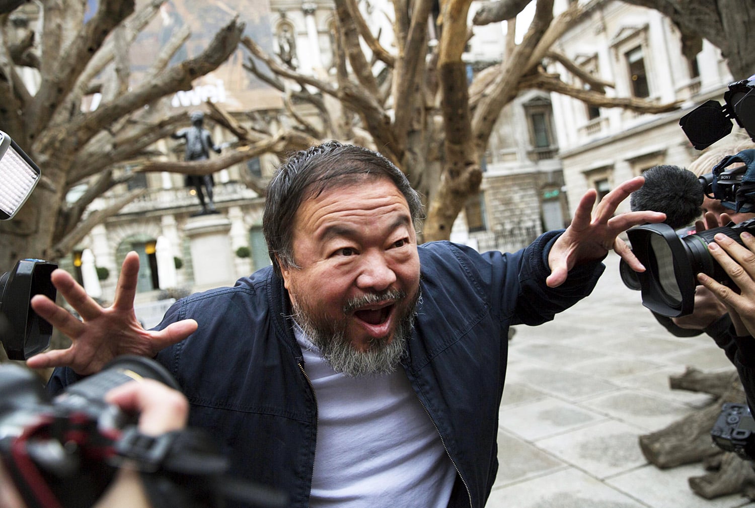 It was an unexpected photo opportunity, as Ai Weiwei stood inside London's Royal Academy of Arts on Tuesday surrounded by 20 years' worth of his artworks.