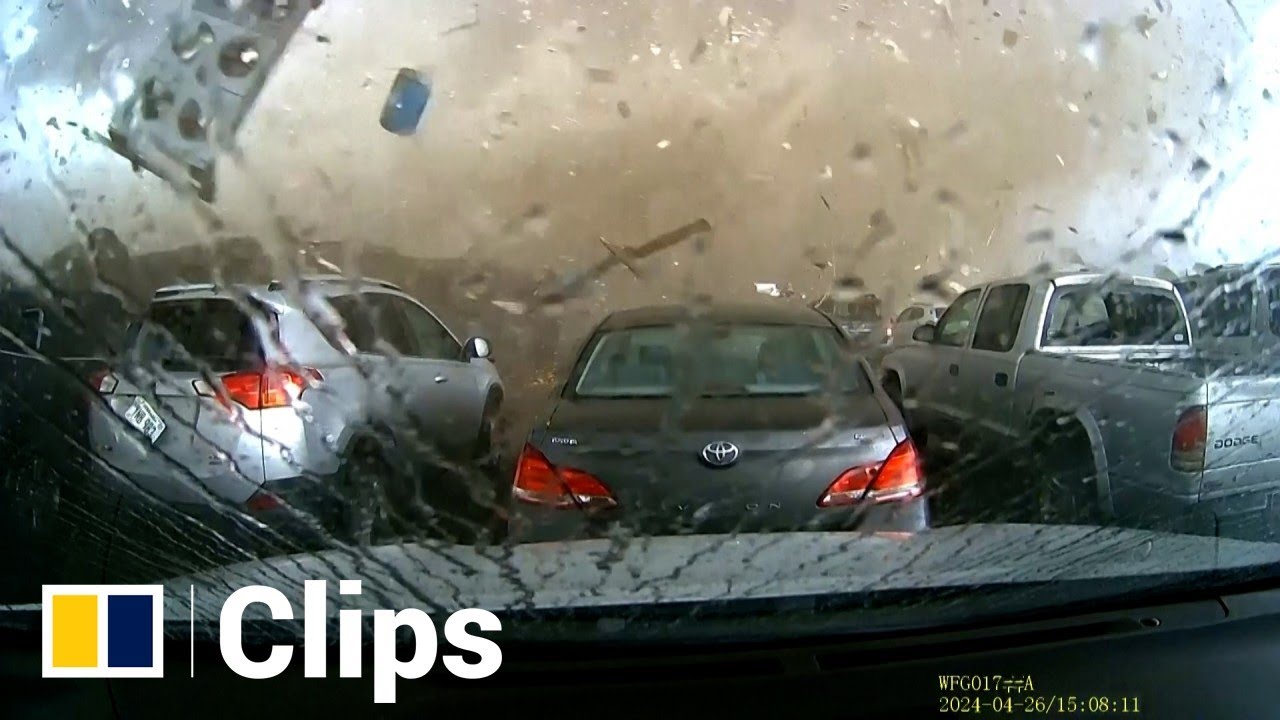 A dashcam video shows the moment a powerful tornado flattened a building in Lincoln, a city in the US state of Nebraska.