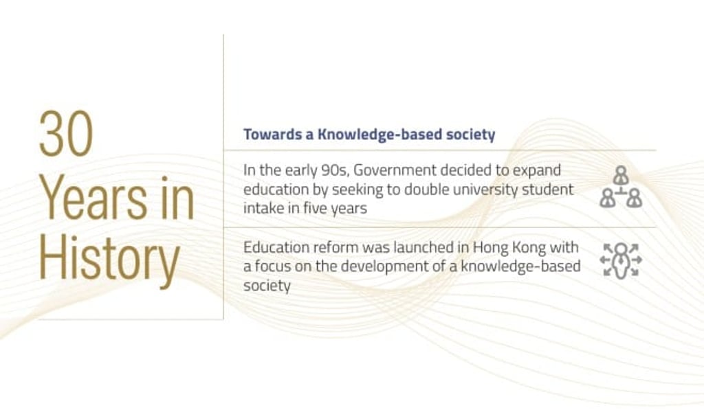 The early 1990s was a significant time for Hong Kong universities, because the government decided to expand education by seeking to double the intake of students within five years to meet the rising needs of society. Leung was Chairman of the University Grants Committee (UGC) at the time, and viewed this as an opportunity to raise the bar for university education across the board in the city.