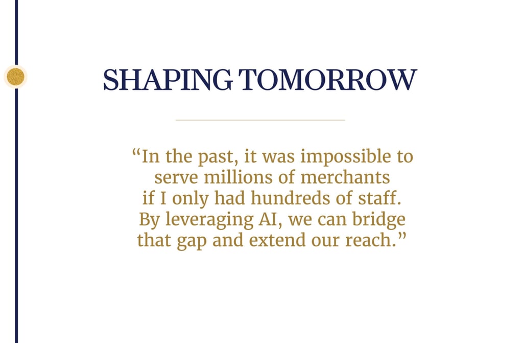 “In the past, it was impossible to serve millions of merchants if I only had hundreds of staff. By leveraging AI, we can bridge that gap and extend our reach.”