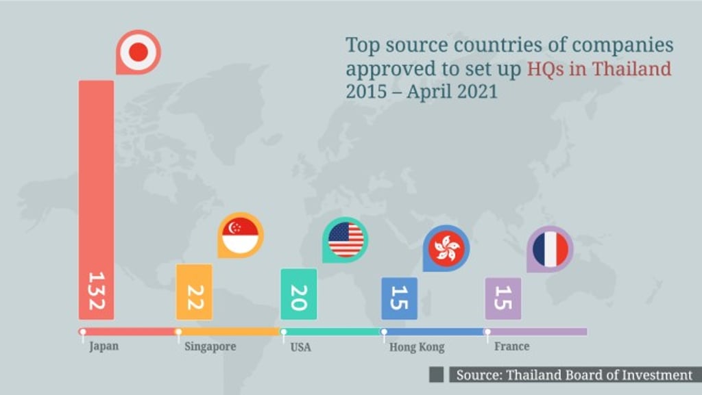 U.S. energy major Exxon Mobil Corp., Europe’s leading tiremaker, Michelin, the Japanese company that invented instant noodles, Nissin Foods, and BRAND’s Suntory, a unit of the world’s third largest spirits manufacturer, are among other heavyweights that have also chosen Thailand as their regional headquarters.