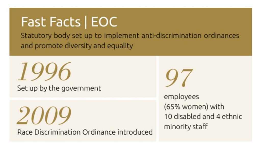 Making Hong Kong a fairer place takes time. It was only in 1996 that the city’s women won the right to the statutory paid holidays already enjoyed by men, with the introduction of the Sex Discrimination Ordinance. The government-funded Equal Opportunities Commission (EOC) was established the same year. Since then, the commission has worked hard to promote equality of opportunity and an inclusive community.