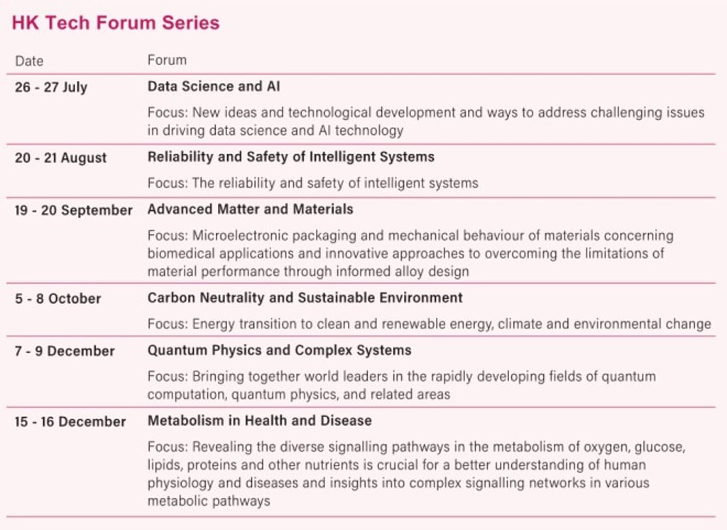 Six forums in the HK Tech series will be held in the second half of 2022 with plans to expand into 2023 and beyond. The next forum, which is on advanced matter and materials, will be held from 19 to 20 September.