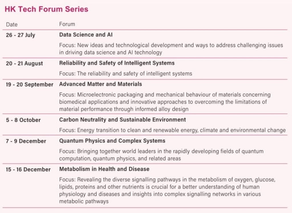 Five forums for the HK Tech Forum series have been held in the second half of 2022, and there are plans to expand into 2023 and beyond. The next forum, which will be on metabolism in health and disease, will be held from 15 to 16 December.