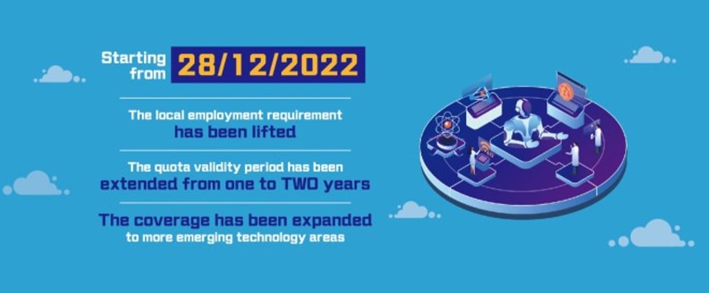 To continue to create strong impetus for growth, the Chief Executive underlined in his "The Chief Executive's 2022 Policy Address" that Hong Kong must be more proactive and aggressive in “competing for enterprises” and “competing for talent”. Along with the new institutional setups and an array of new initiatives targeted at attracting talent, the TechTAS was also enhanced on 28 December 2022 to facilitate I&T talent to take up R&D work in Hong Kong. Launched in June 2018, the TechTAS provides a fast-track arrangement for companies to admit overseas and Mainland technology talent. Successful companies will be given quotas for bringing in such people for undertaking R&D work in Hong Kong. In the past few years, hundreds of I&T talent have come to Hong Kong through the TechTAS to undertake R&D work, that has contributed to the rapid growing in Hong Kong’s I&T ecosystem.
