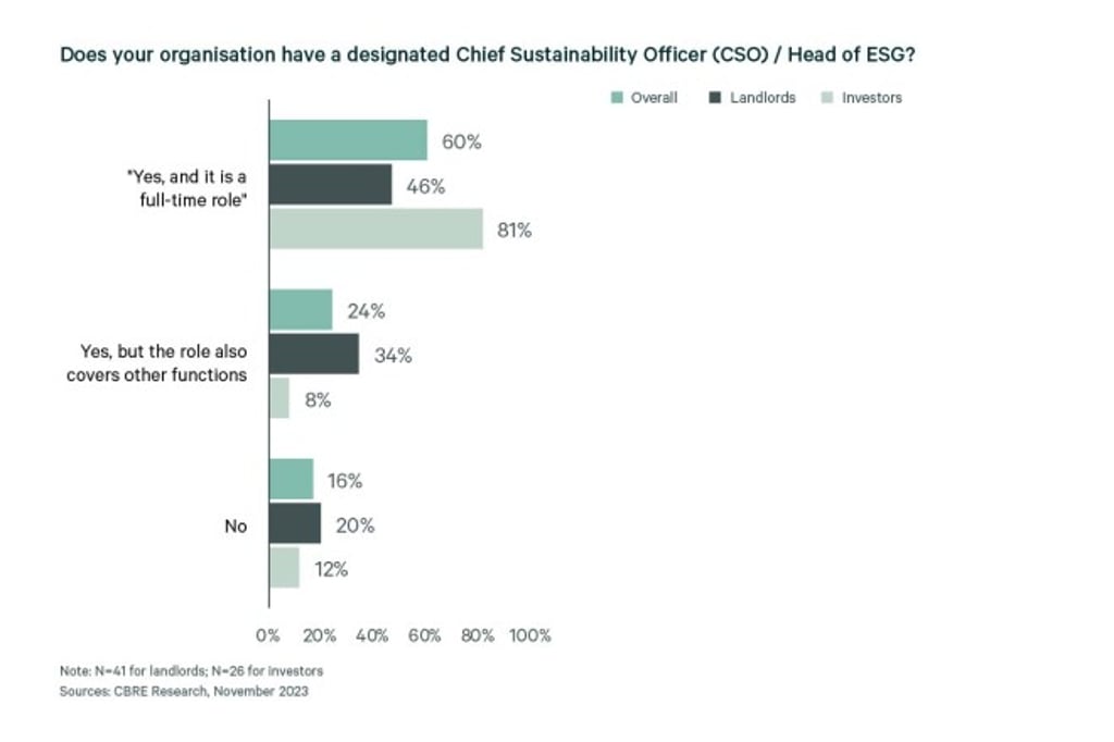 - A recent survey by CBRE finds that the role of the Chief Sustainability Officer in real estate is relatively new in Asia and more established in the Pacific region, but is expanding, covering everything from ESG monitoring and reporting to overseeing sustainability initiatives, ensuring regulatory compliance, and fostering cultural change