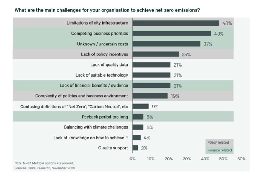 On the other hand, many multinational tenants are aiming to reach net zero by 2030, creating a discrepancy in target dates between surveyed real estate asset owners and occupiers.