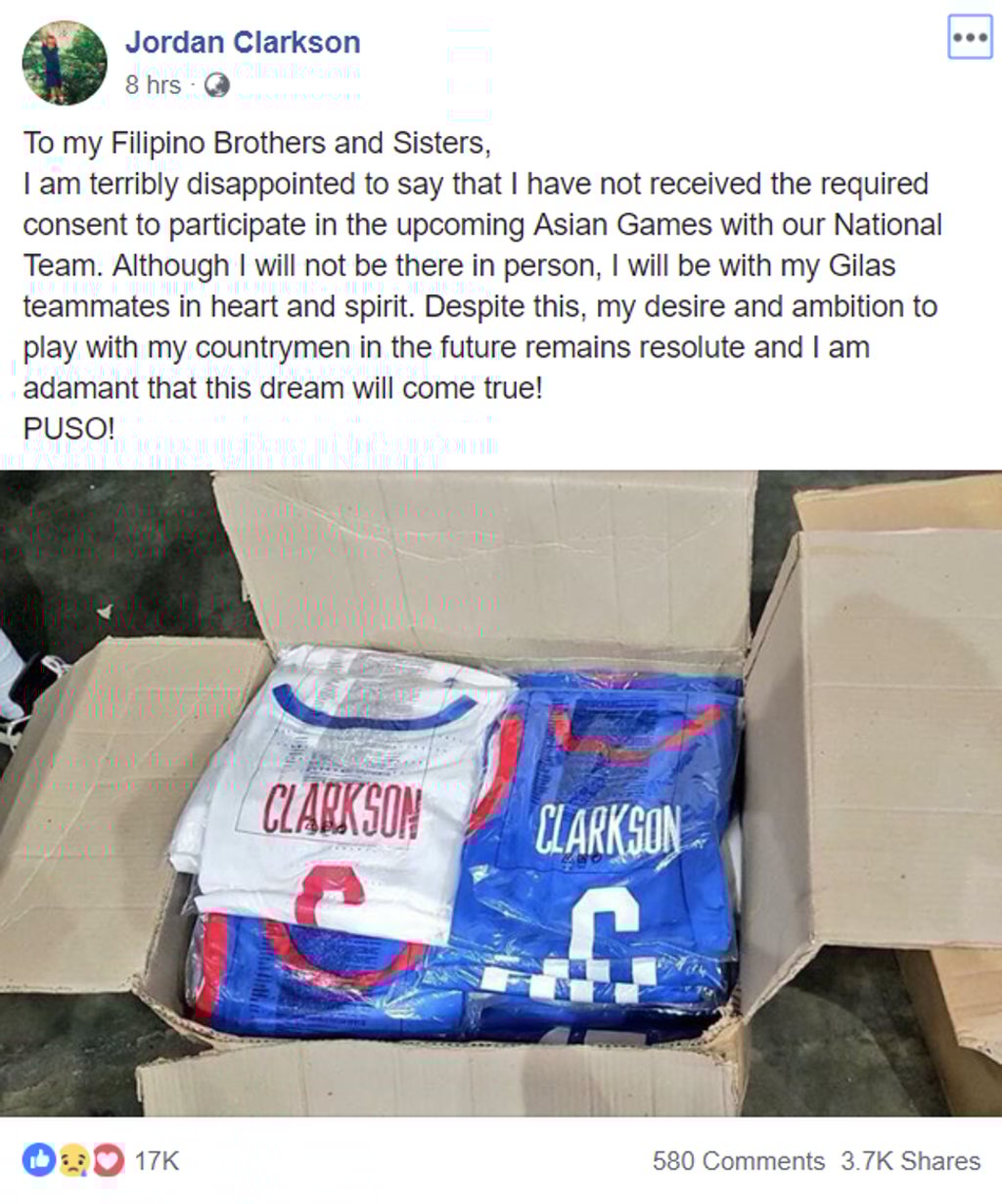 “To my Filipino brothers and sisters, I am terribly disappointed to say that I have not received the required consent to participate in the upcoming Asian Games with our national team,” he said on his official Facebook page.