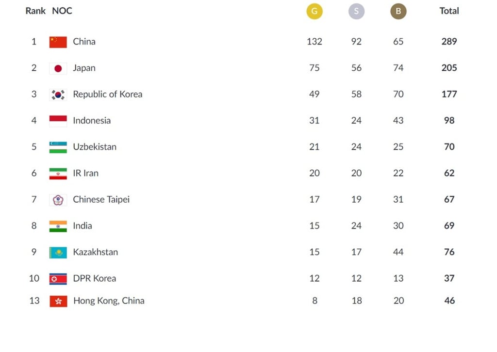 Asian Games 2018 medal table: who leads the final standings in Indonesia?