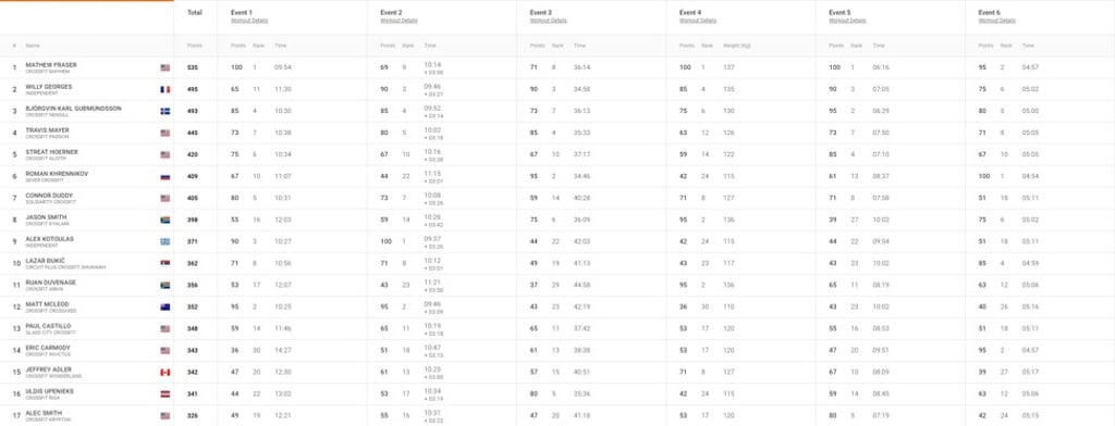 - Reigning CrossFit Games champion wins two of Friday’s three events and finishes second in the other to shoot straight to the top of the leader board
