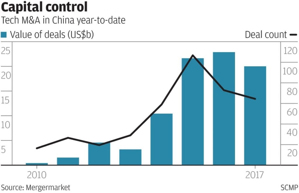 “The value of technology deals [on the mainland] reached US$19.9 billion across 65 transactions from January to April, down from US$22.8 billion in 73 deals recorded in the same period last year,” Mergermarket financial researcher Sophie Jin said on Tuesday.