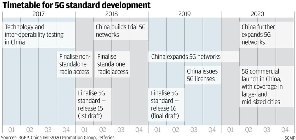 The international authorities overseeing the creation of a unified standard for 5G mobile technologies are expected to release its initial phase next year and the final phase in 2019, paving the way for a broad roll-out of 5G services by mobile network operators from 2020.
