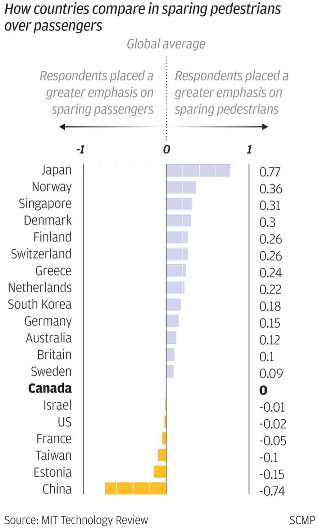 Chinese prefer killing pedestrians over passengers when autonomous cars fail