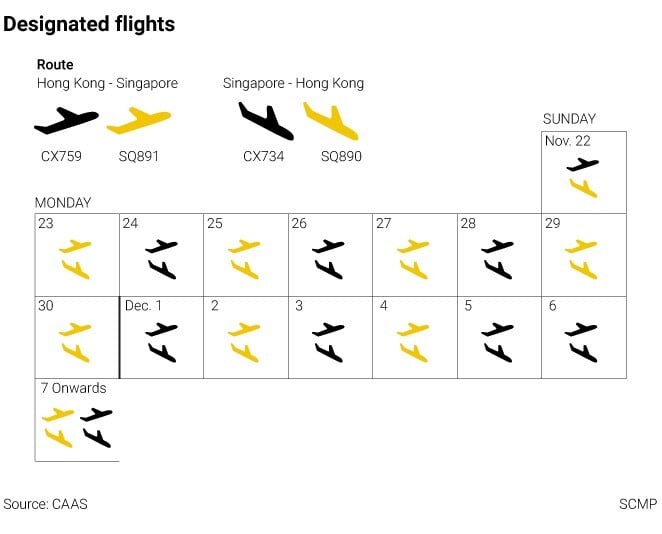 Online travel services provider Trip.com said searches for Hong Kong to Singapore flights surged 300 per cent within three hours of the travel bubble announcement, while the jump was 200 per cent for Singapore to Hong Kong flights. Volume climbed for hotels in both cities as well, it said.